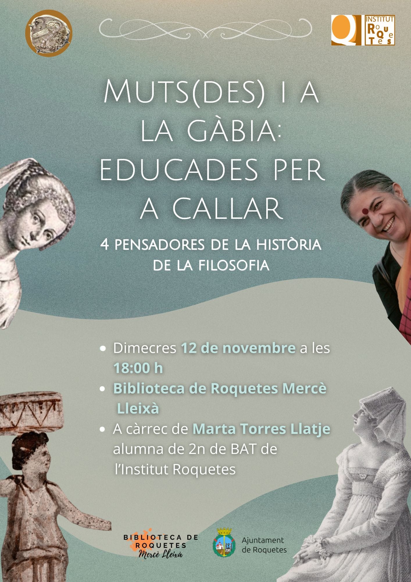 Presentació ‘Muts(des) i a la gàbia: educades per a callar’, a càrrec de Marta Torres + Afegir a Google Calendar Exportació a + iCal / Outlook Data nov. 12 2025 Caducat! Comparteix aquest esdeveniment