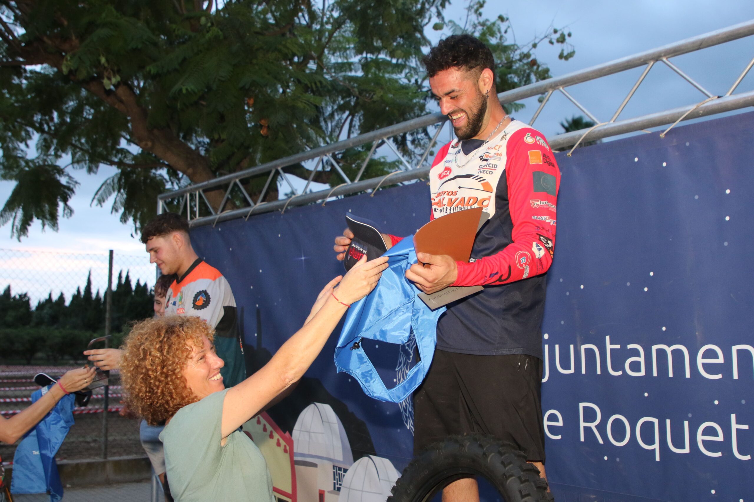 “La nota és un dotze, perquè tot ha anat rodat. Estic esgotat, però també molt feliç”, ha dit el vencedor i coorganitzador de la segona edició del Mototerra Ciutat de Roquetes, Pau Doñate, després de creuar la línia de meta. “Vull donar les gràcies a tota la gent que ha vingut, i a l’Ajuntament pel suport en l’organització”, ha ressaltat, sense amagar l’alegria per la seva segona corona consecutiva a casa, davant la seva afició.